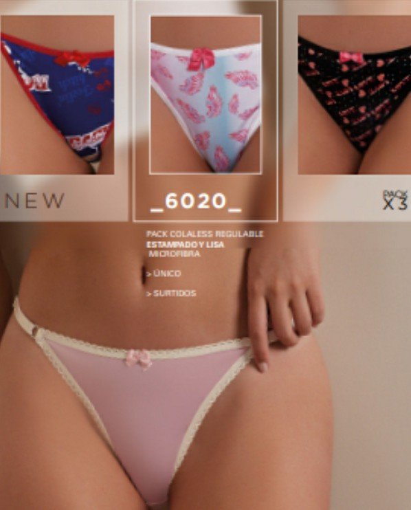 Pack por tres cola less regulable con elástico ancho de algodón y lycra talle especial