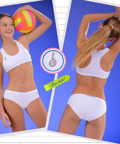 Codigo: 198 — coramina lenceria — Conjunto juvenil de top y culotte algodon lycra y puntilla.