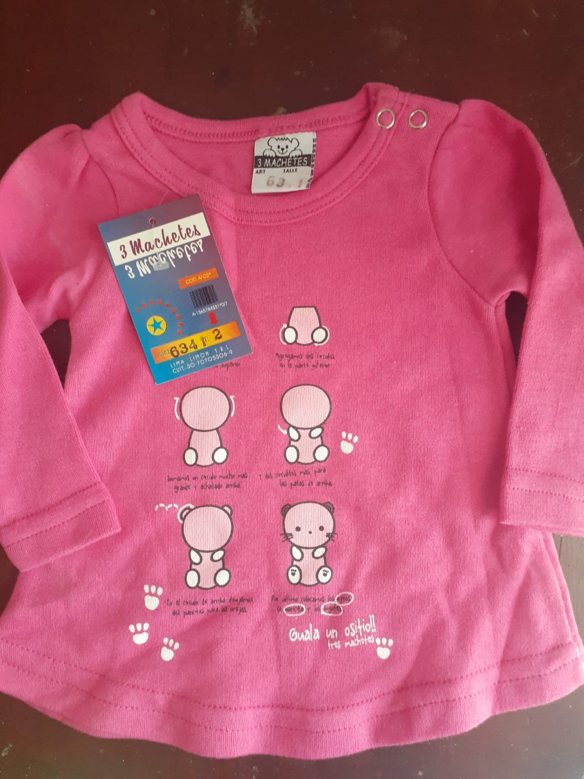 Remera manga larga de algodón con broche para bebe