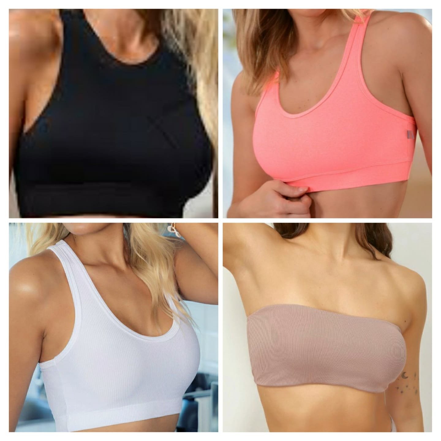 Top de microfibra con algodón interno y elástico personalizado de Brigitte + Top clasico animal print de Yamiel + Top de morley de Kaury intimates + Top microfibra y algodón interno de Coramina + Top de morley de microfibra de Melifera + Top deportivo microfibra y tul de red de Melifera + Top con taza soft interna estilo crop de microfibra de Tiento + Top strapless de morley forrado de Tiento.